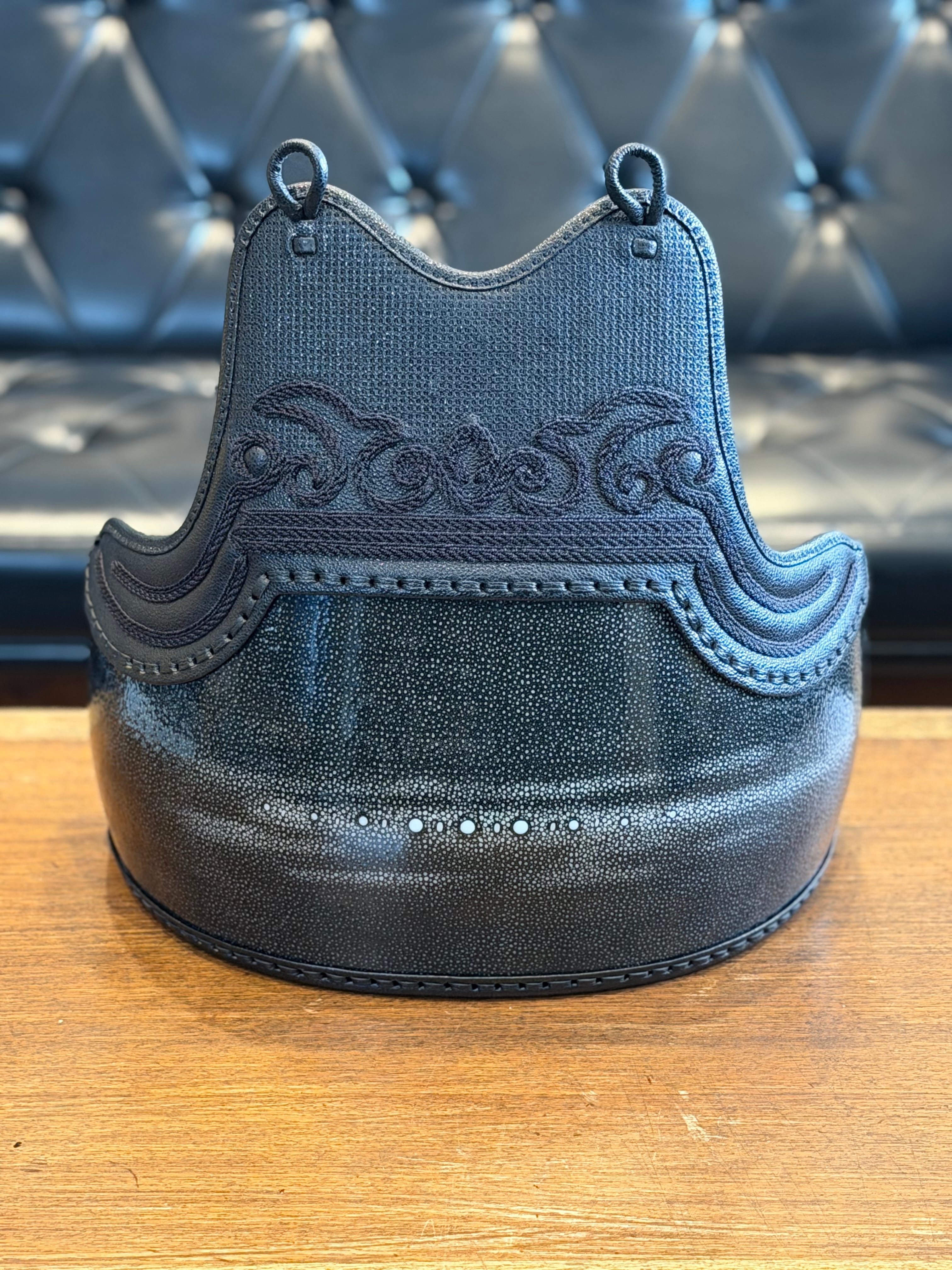 【王道の黒✨サンプル1名様限定大特価‼️】【胸Lサイズ身長165〜175cm】 兵庫ヒロヤ製『兜飾り胸』鮫皮型強化樹脂胴 黒色