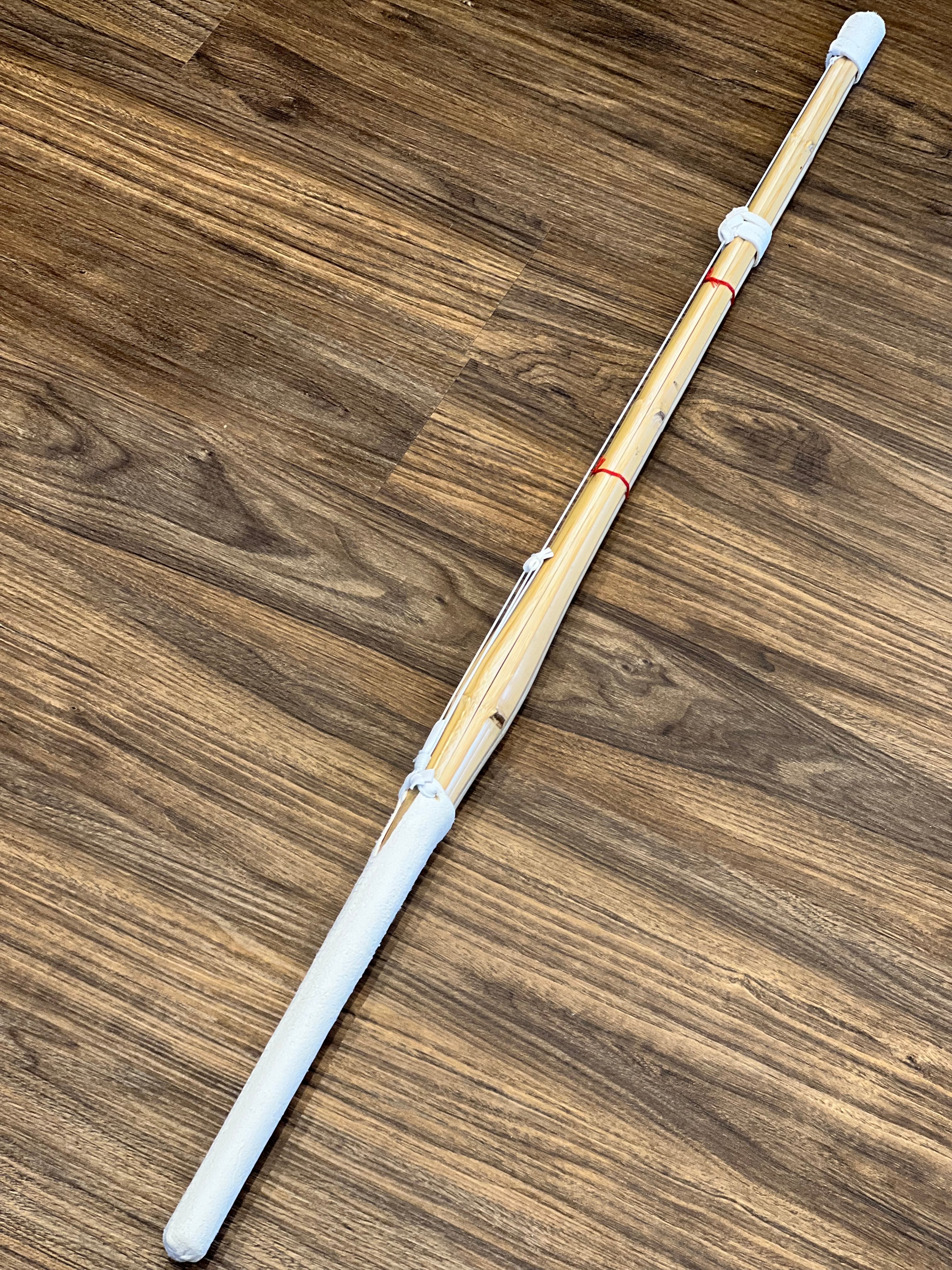 並製竹の完成品特別価格です。柄は返しがありませんが稽古用竹刀としては充分すぎる内容です。3.0サイズから大人用まで対応しております。